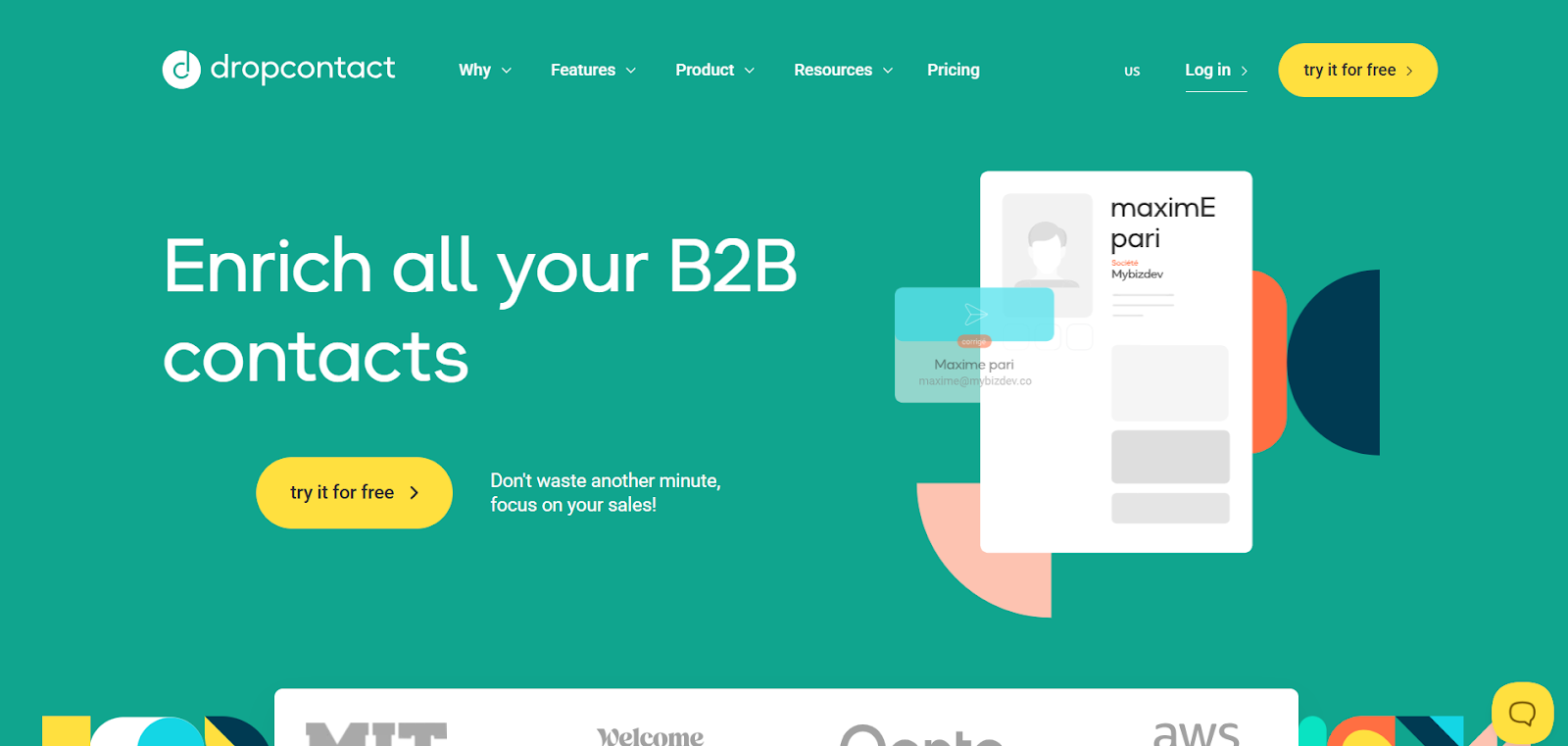 Dropcontact is a GDPR-first enrichment platform that focuses on email discovery, data cleaning, and CRM hygiene, without relying on stored contact databases. Instead, it generates emails in real time and emphasizes compliance, making it especially popular with EU-based teams and companies operating in regulated markets.