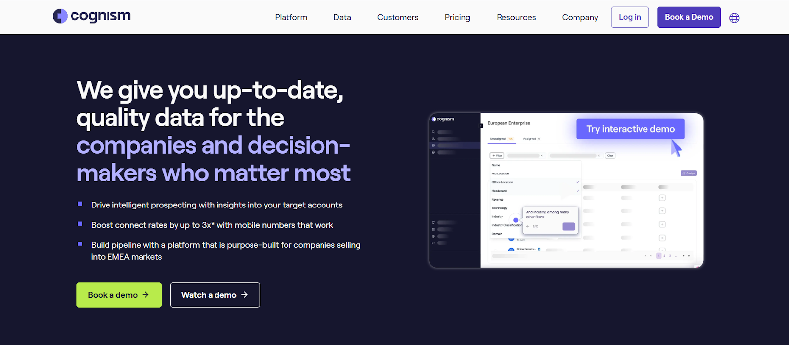 Best for: Enterprise teams needing large-scale coverage, firmographics, and buying signals