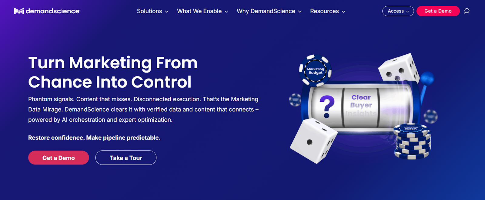 DemandScience is positioned around B2B demand generation and data-driven marketing outcomes (often used as a pipeline acceleration layer with data + programs).