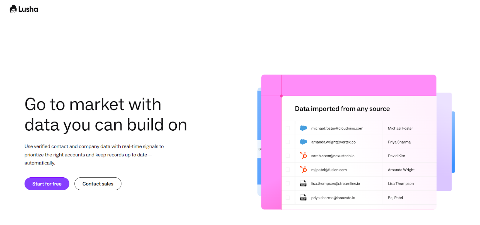 - contact and company data (emails, phones, firmographics),